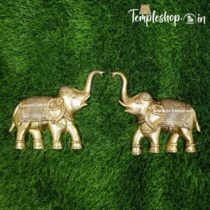 • Kamatchi Enterprises Brass Elephant Pair Wall Hanging | Elephant Wall Decor | Hanging for Living Room Bedroom & Home Decoration