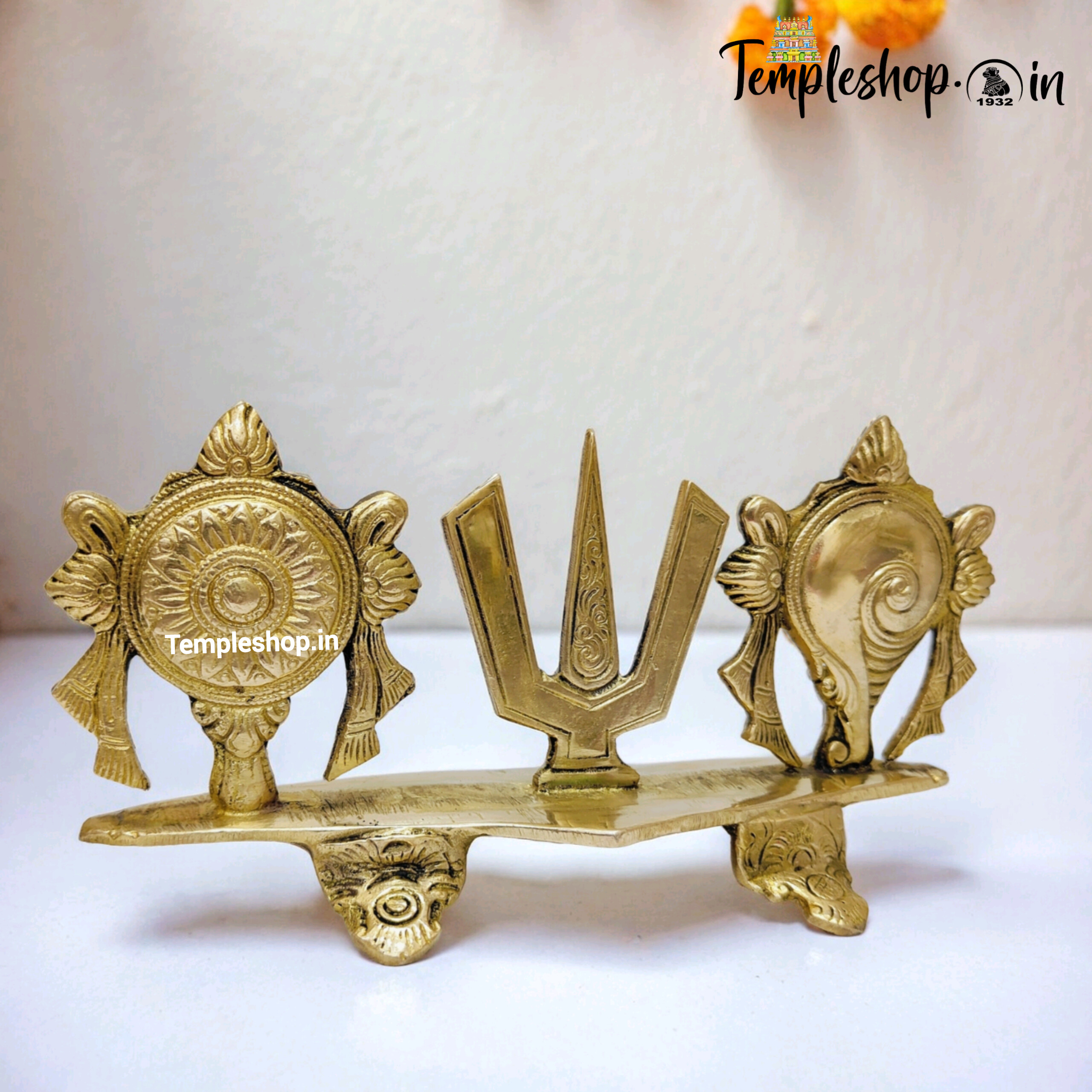 • MATERIAL – BRASS | COLOUR – YELLOW | PACKAGE CONTAINS : 1 BRASS SANKU CHAKRA NAMAM STAND.